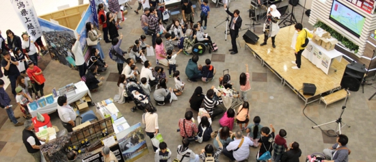「缶バッジ作り体験」(大町市)なども行われ大勢のお客様からお越しいただきました。
