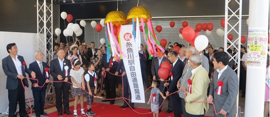 糸魚川駅の自由通路(アルプス口ー日本海口)ががつながり、自由通路渡り初めセレモニーが行われました。日本海口、アルプス口では、楽しいイベント盛りだくさんで8,000人の来場者をお迎えし、自由通路開通をお祝いしました。